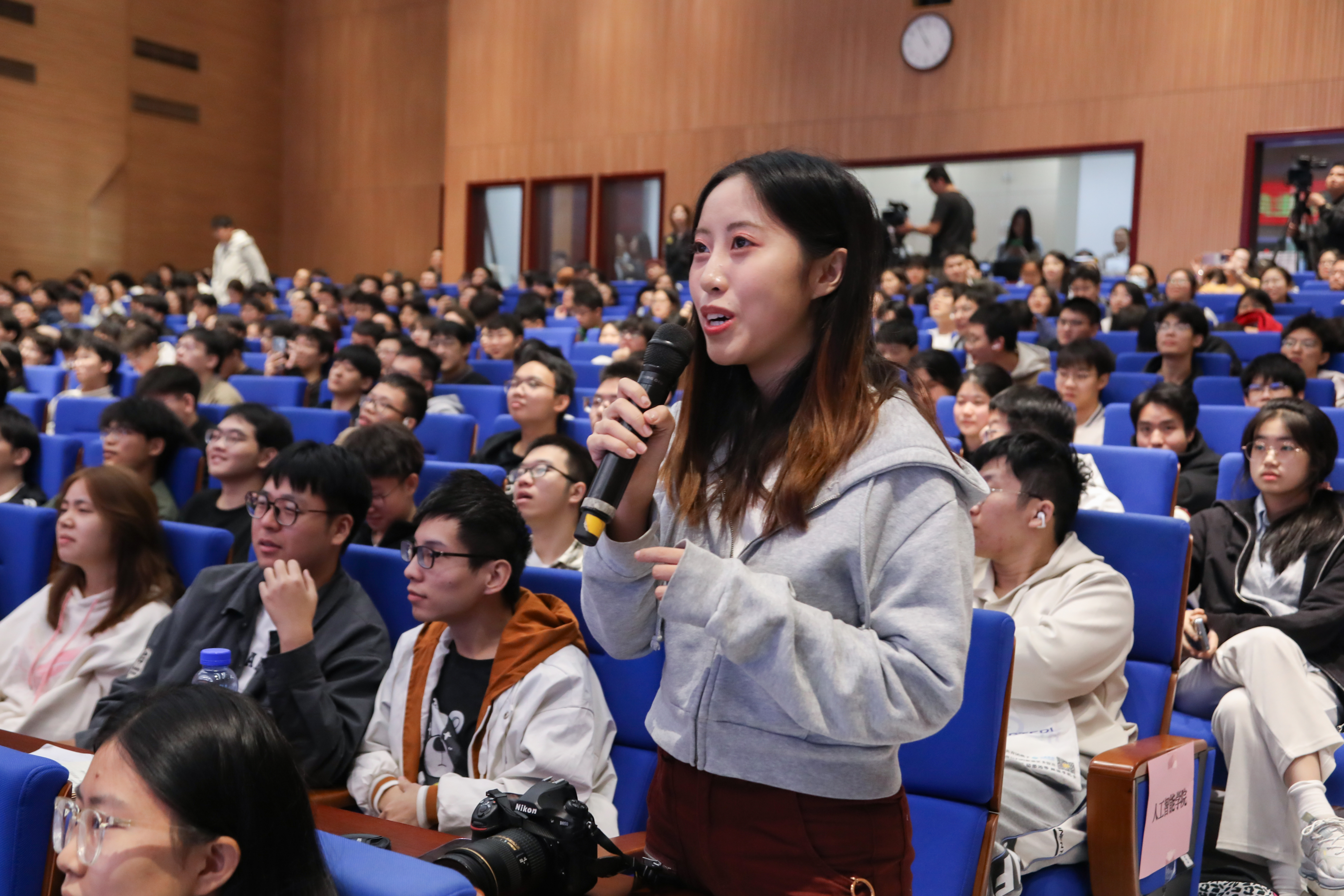 随后,朱松纯梳理了人工智能从数据驱动到价值驱动的范式变革,阐述了人工智能的理论基础和发展路径,以及通用人工智能从算法到艺术、从认知到具身的创新融合之路等前沿知识。他独辟蹊径地指出,中国传统文化中的“心”与“理”哲学,能为通用人工智能的发展提供关键启迪。他表示,将人文社科的思想精髓融入算法是实现这一跨越、为机器注入“灵魂”的创新之路,是破解当前困境、开辟发展新路径的核心所在,这一理论令在场师生眼界大开。