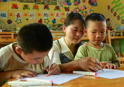 “这5个学生中3个上幼儿园,两个念2年级。”涂娅说,她平时上课会把每一节课分成两个20分钟,先在幼儿园上20分钟,这时就让一年级学生自己预习;20分钟后,再到一年级教室上课,让幼儿园的孩子们自主活动。