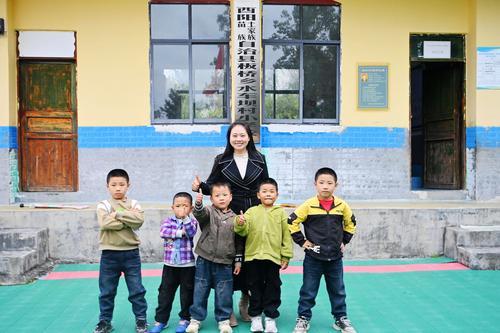 ▲10月24日,重庆市酉阳土家族苗族自治县板桥乡水车坝小学,涂娅和5名学生合影。通讯员 陈碧生 摄
