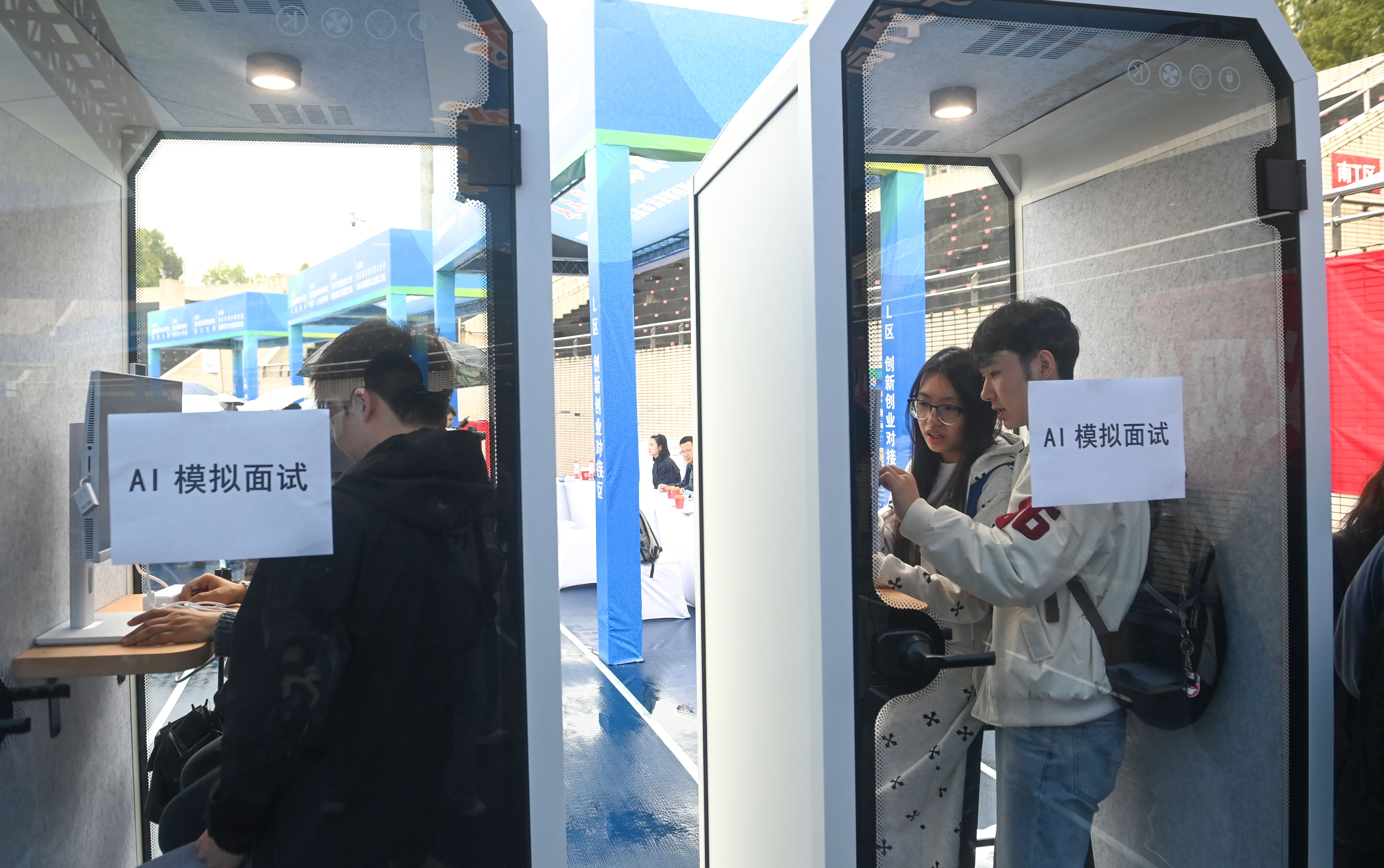 ▲招聘会现场,学生正在进行AI模拟面试。记者 郑宇 摄