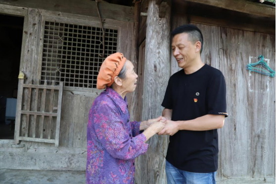 ▲吴胜看望平溪村空巢老人。受访者供图
