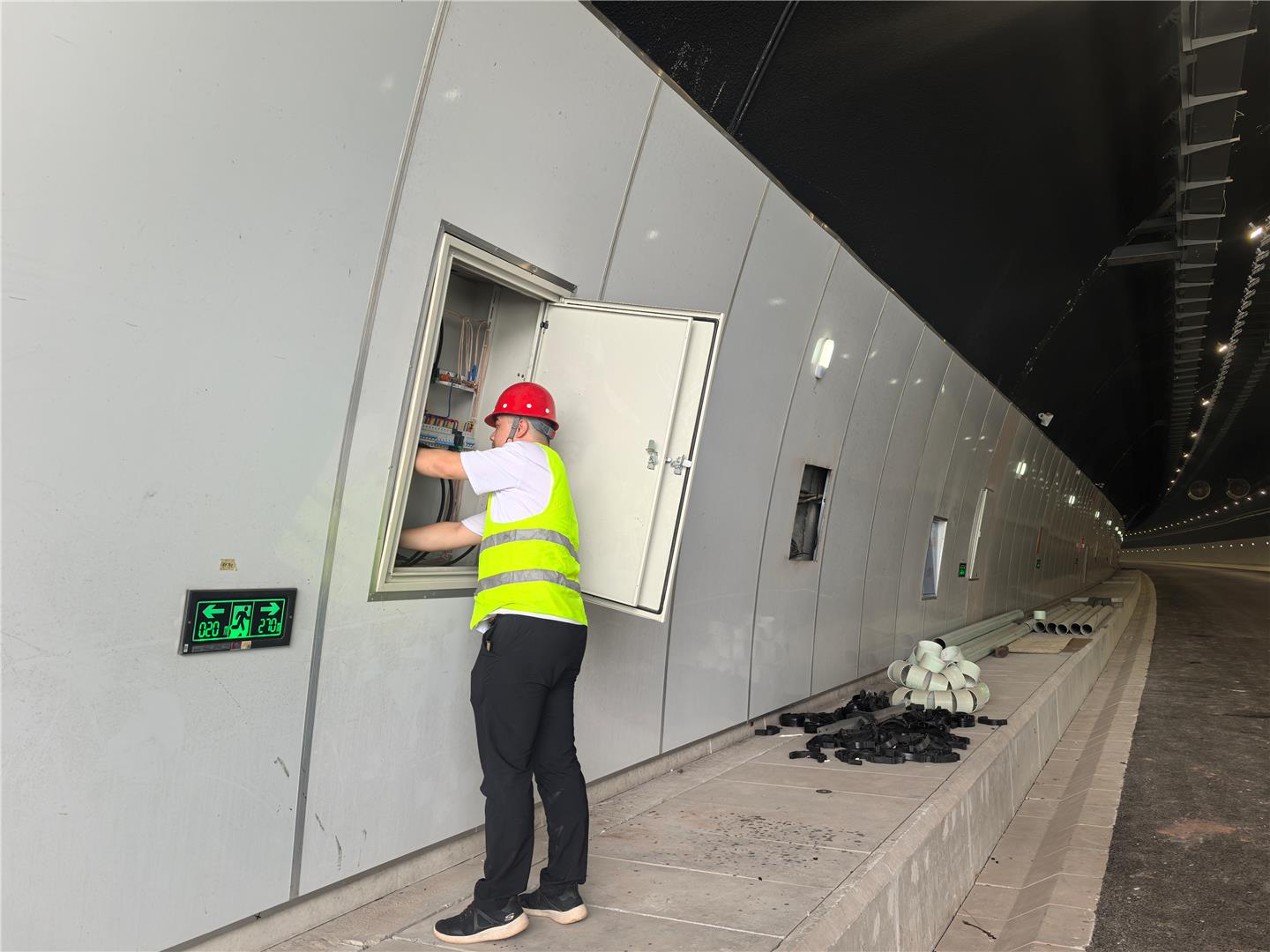 记者在新燕尾山隧道项目一标段的隧道施工现场看到,工人们正在进行部分设备的安装和调试。
