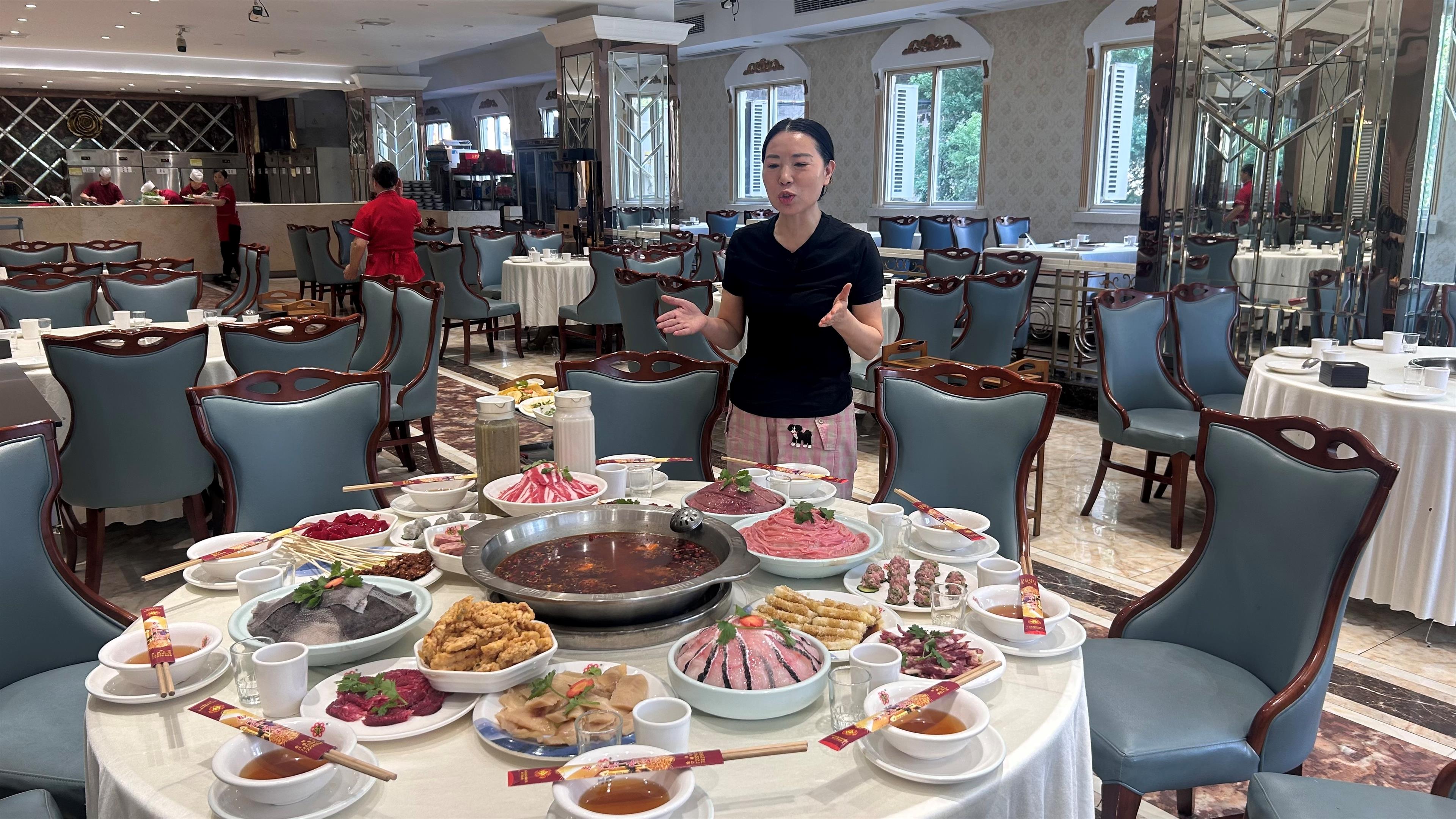 南方鸭肠王负责人正在介绍“渝超”期间活动套餐