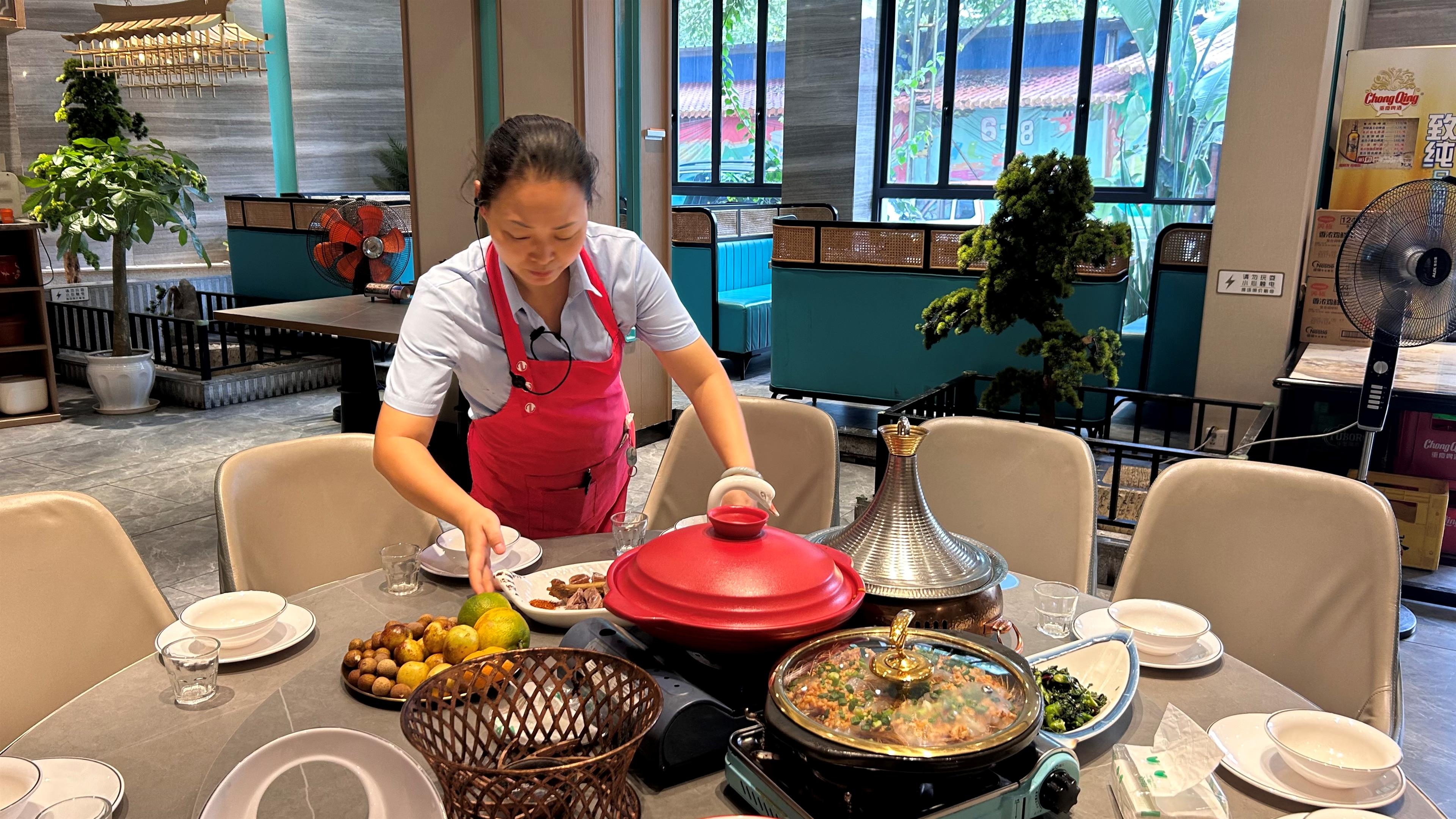 粗茶淡饭涪陵广场店相关负责人在介绍菜品