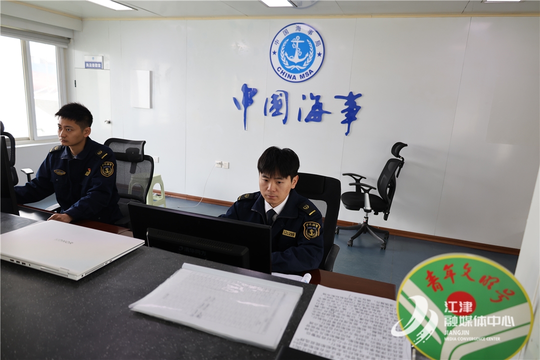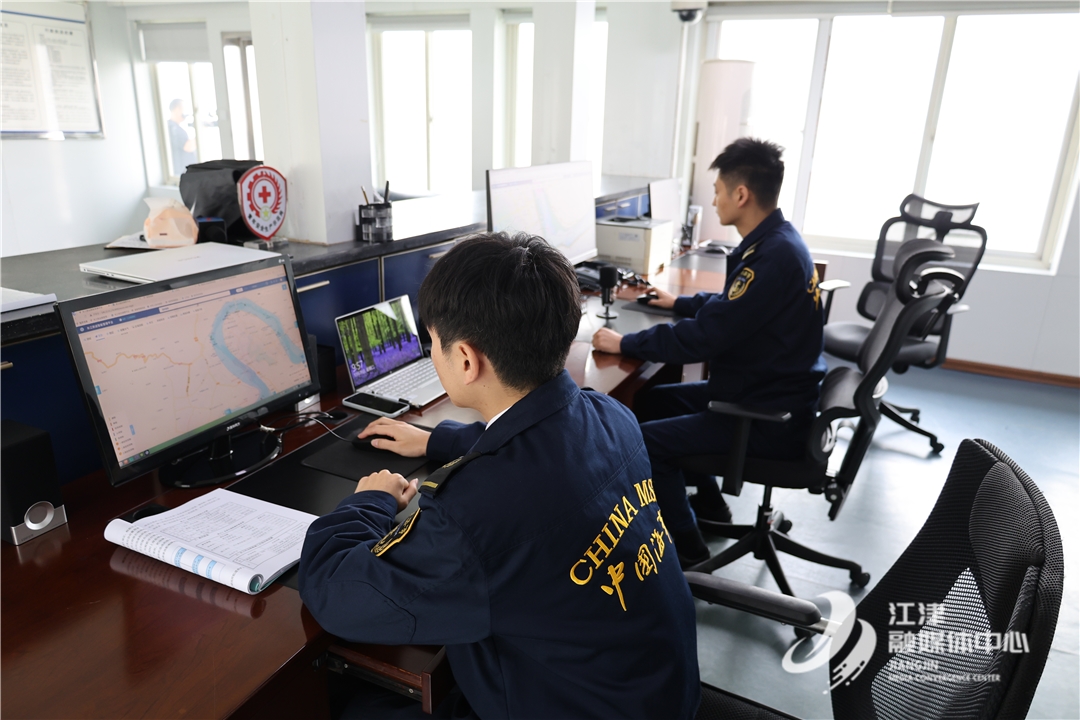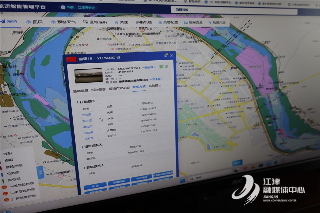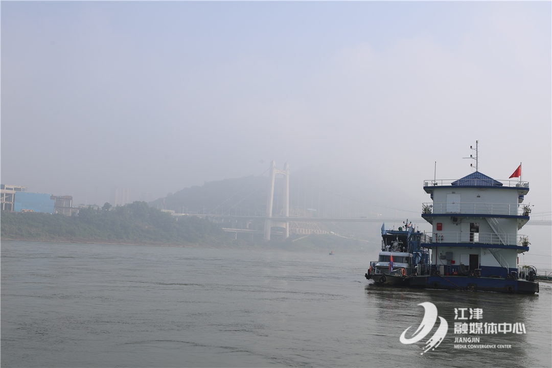 9时20分,记者在通泰门长江段看见,江面仍被薄雾笼罩,几江长江大桥若隐若现。在中国海事执法船上,重庆江津海事处执法人员正动态监看指挥系统、北斗智能语音VHF集控平台,实时监控重点渡口、水域、桥区情况,沉着指导辖区水域船舶有序锚泊,先后督促11艘行进中的船舶严格遵守雾航规定,选择就近安全水域锚泊。