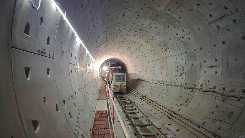据悉,北南区间左线全长约1334米,隧道埋深介于13.9米至35.2米之间,采用圆形断面设计,线路设计最大坡度达20‰,最小转弯半径仅450米。