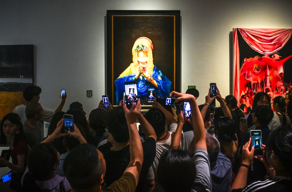 ▲2025年6月18日,川美“开放的六月”毕业生展人气火爆,众多市民前来观展。图为作品《祷》。记者 郑宇 摄/视觉重庆