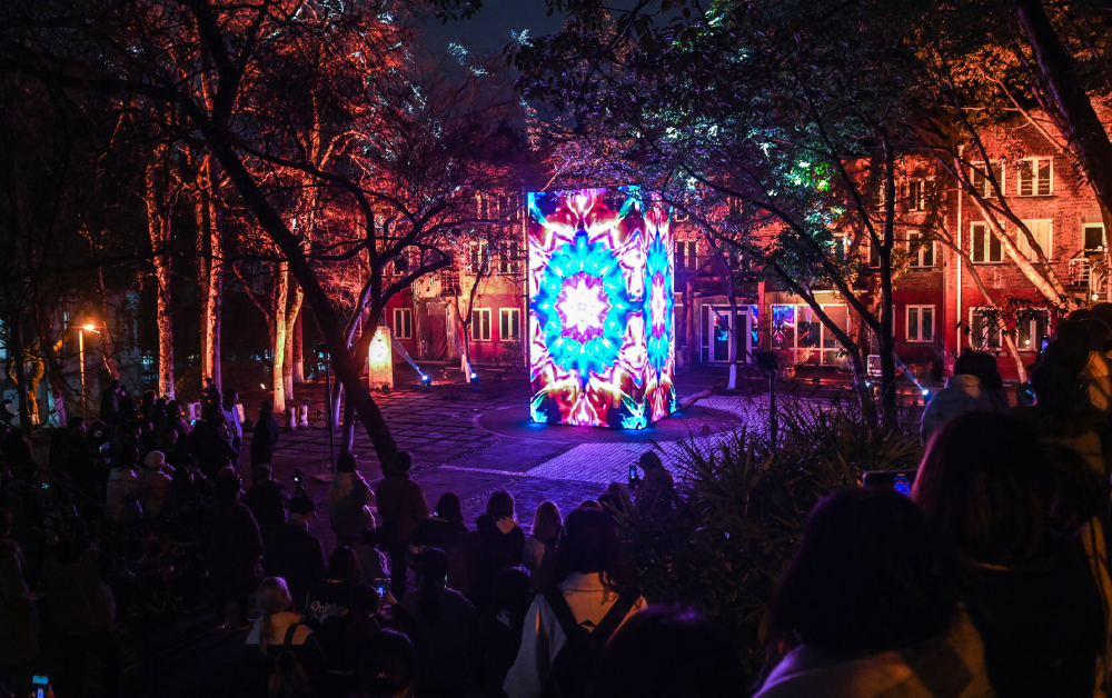 ▲四川美术学院黄桷坪校区,观众正在观看精彩的灯光艺术作品。记者 郑宇 摄/视觉重庆