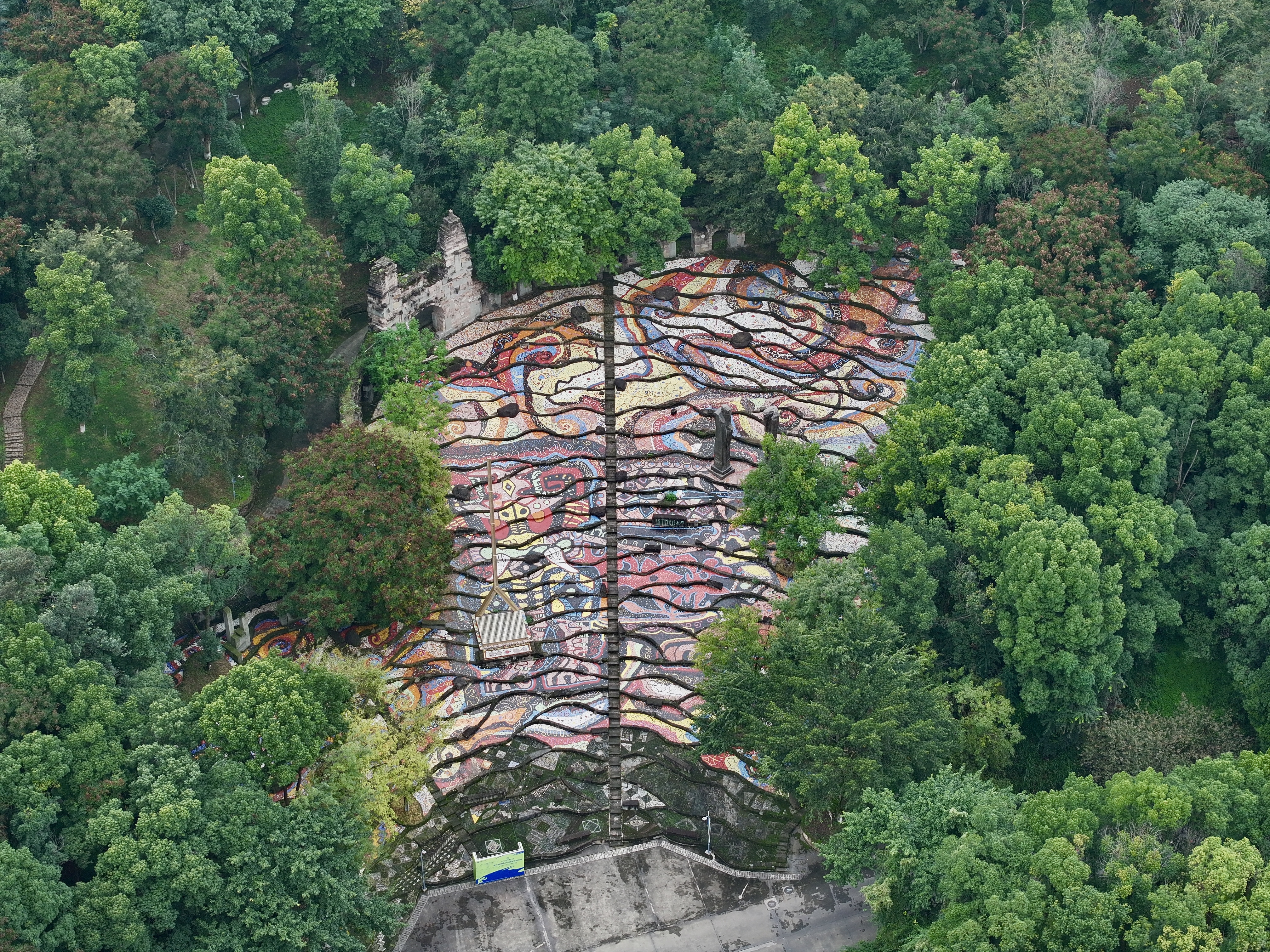 如今,校园内的美术馆外墙已成为现象级打卡点——5万余片废弃碎瓷拼出斑斓立面,既呼应重庆的市井烟火,也暗喻艺术的偶然与生机。