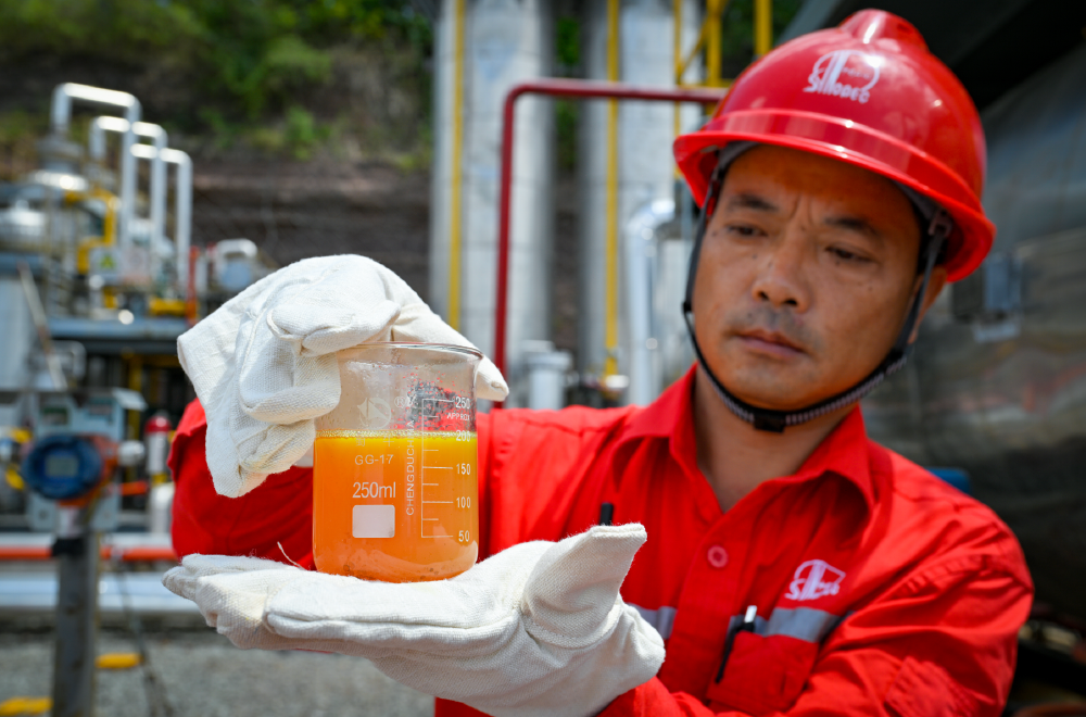 ▲工作人员展示取样出的页岩油。记者 张春晓 实习生 陈昕雯 摄/视觉重庆