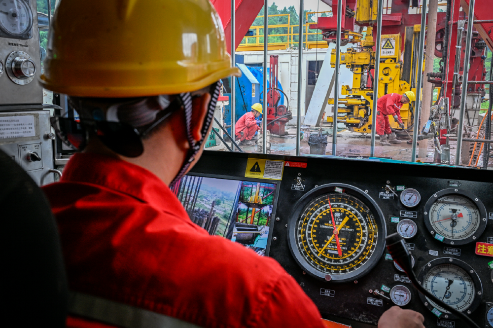 ▲钻井技术人员与室外人员协同施工。记者 张春晓 实习生 陈昕雯 摄/视觉重庆