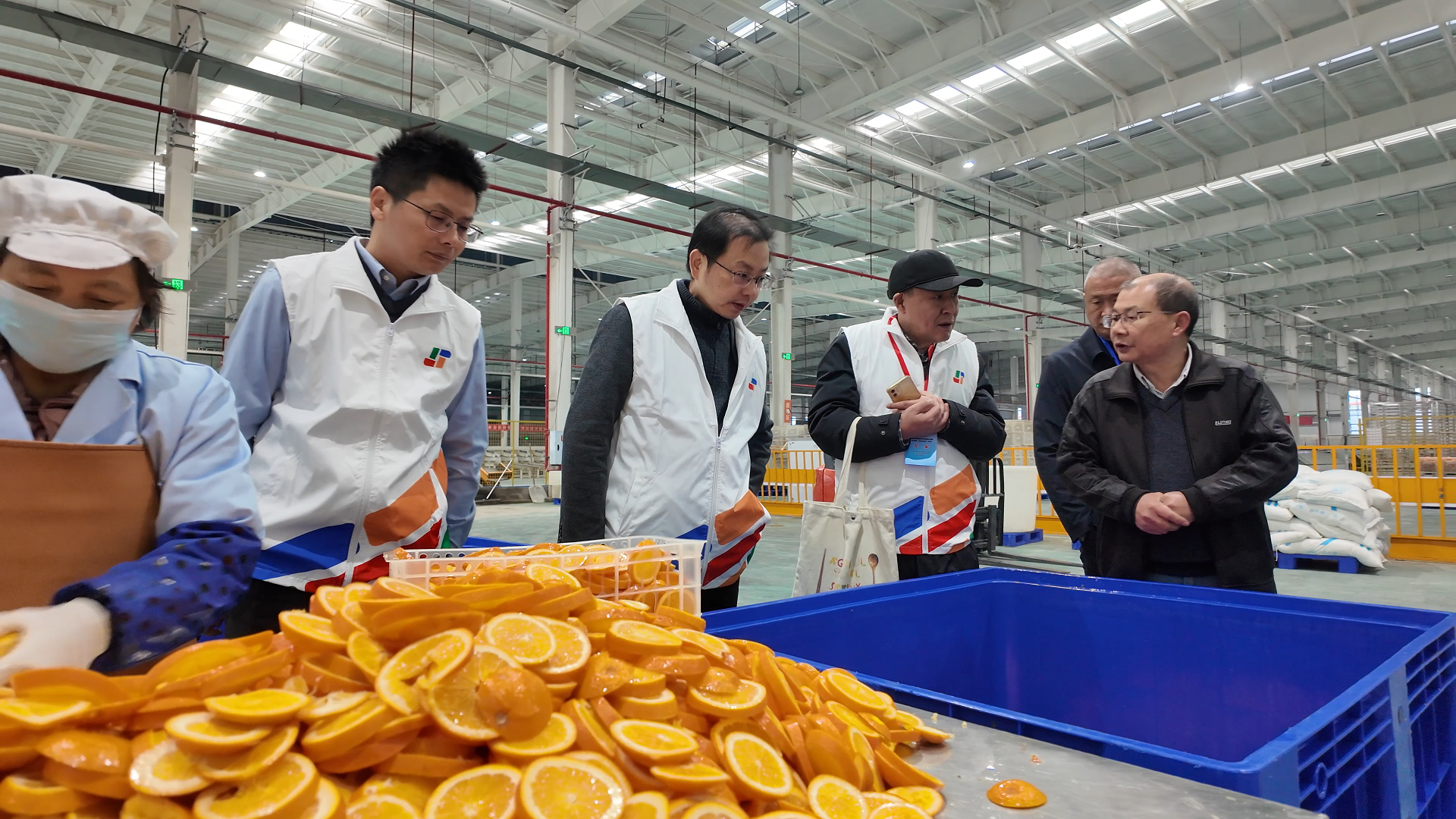 ▲专家团队走访忠县柑橘加工企业。本文图片均由忠县融媒体中心提供
