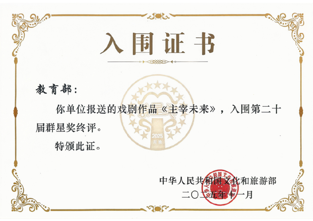 近日,第二十届全国群众文艺领域政府最高奖“群星奖”评选结果正式揭晓。重庆育才中学师生原创的校园剧《主宰未来》,作为教育部选送的戏剧类唯一基础教育阶段作品成功入围终评。这一突破性成绩,不仅是重庆育才中学美育深耕多年的亮眼成果,更标志着重庆市基础教育阶段美育工作在国家级平台实现关键突破,为全市学校美育高质量发展注入强劲动能。