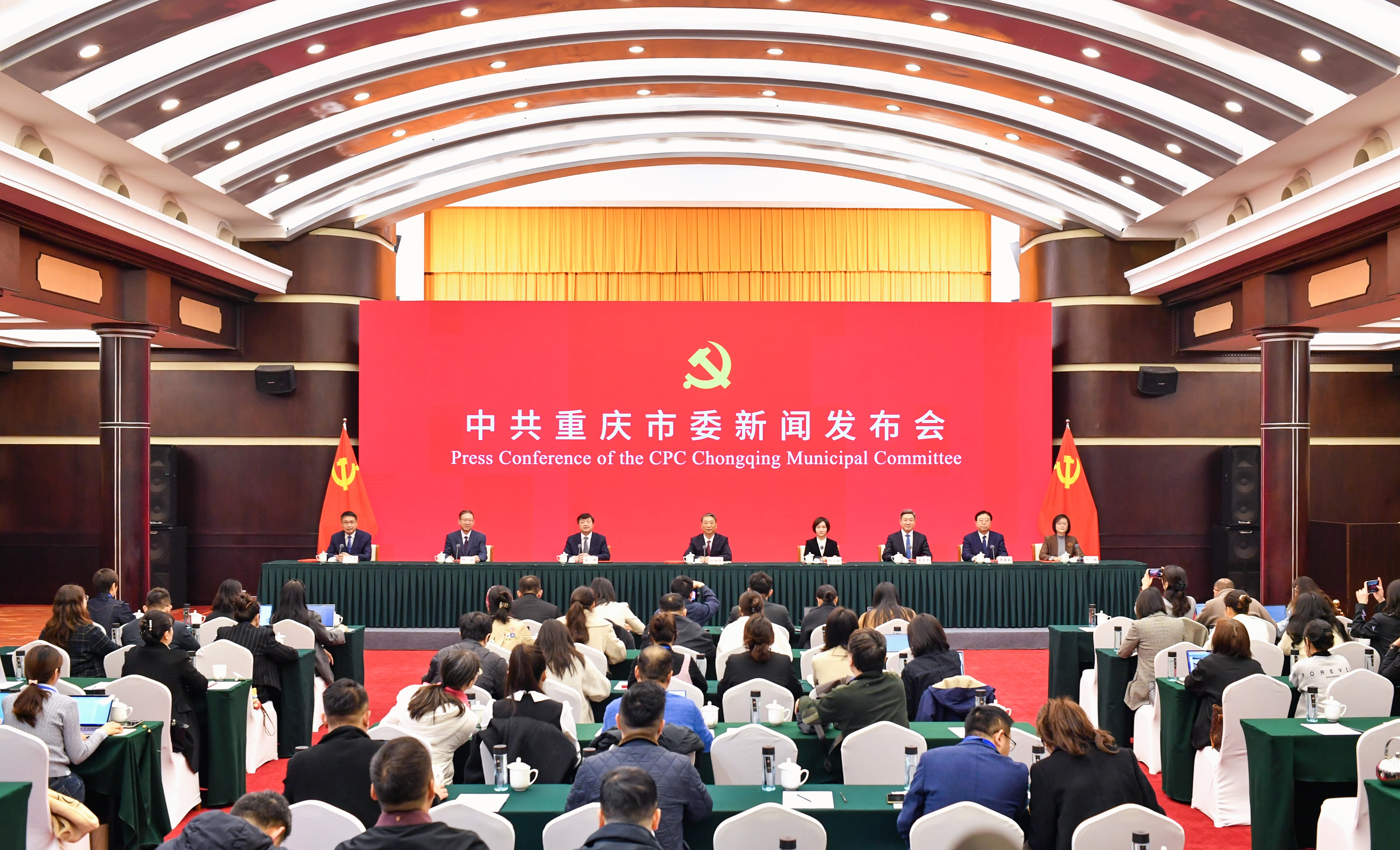▲2025年11月25日,中共重庆市委六届八次全会精神解读新闻发布会现场。首席记者 龙帆 摄