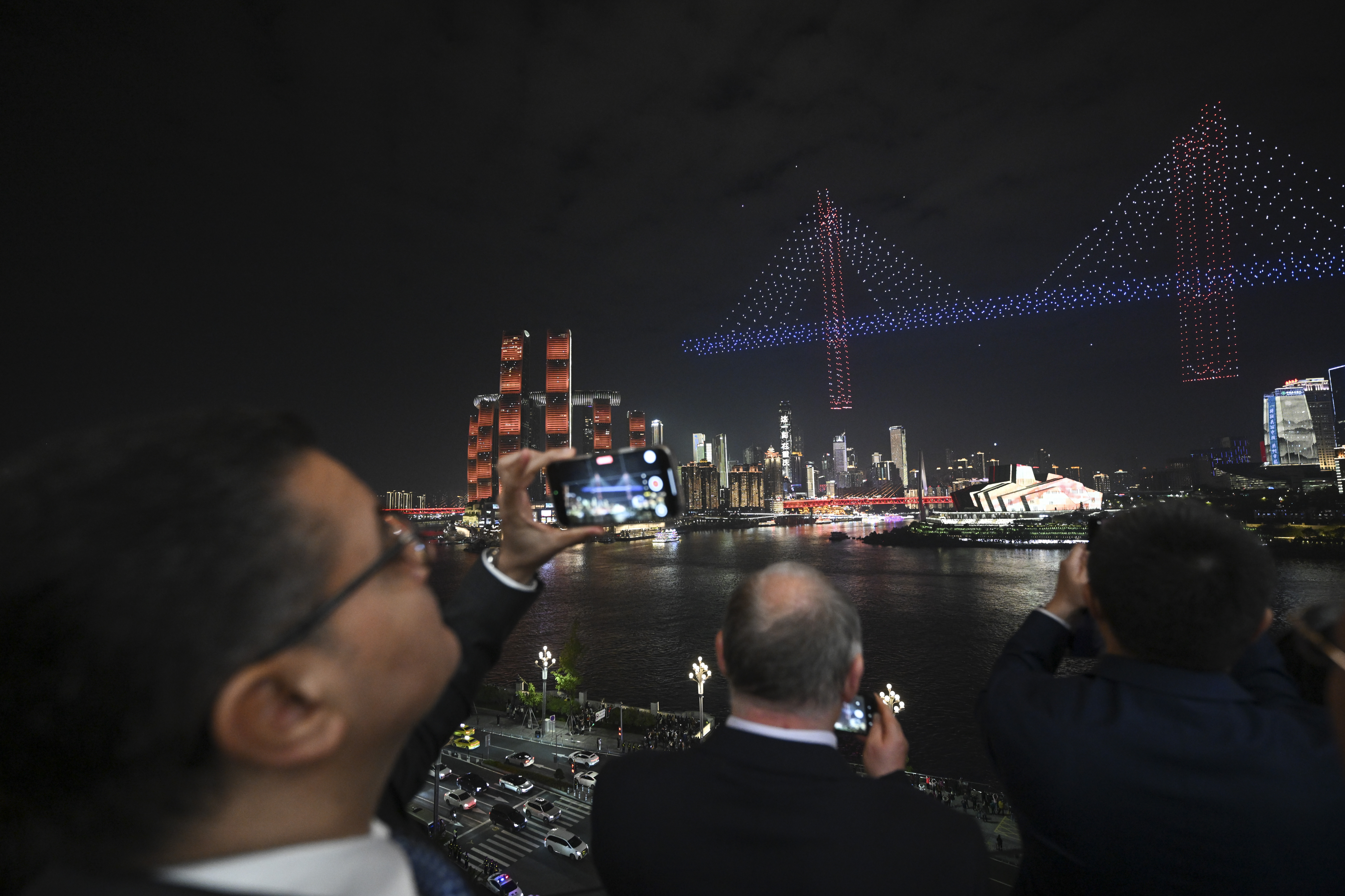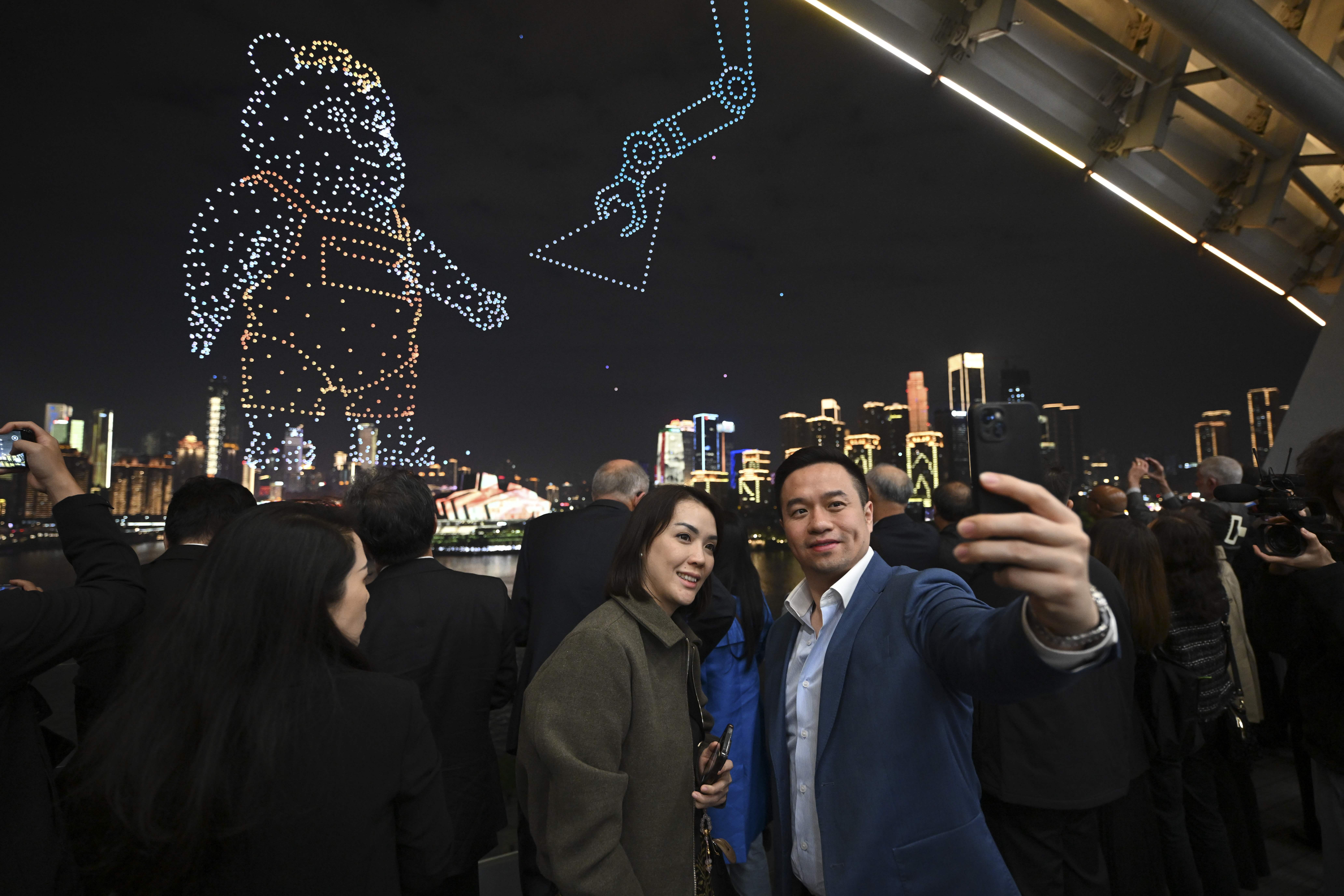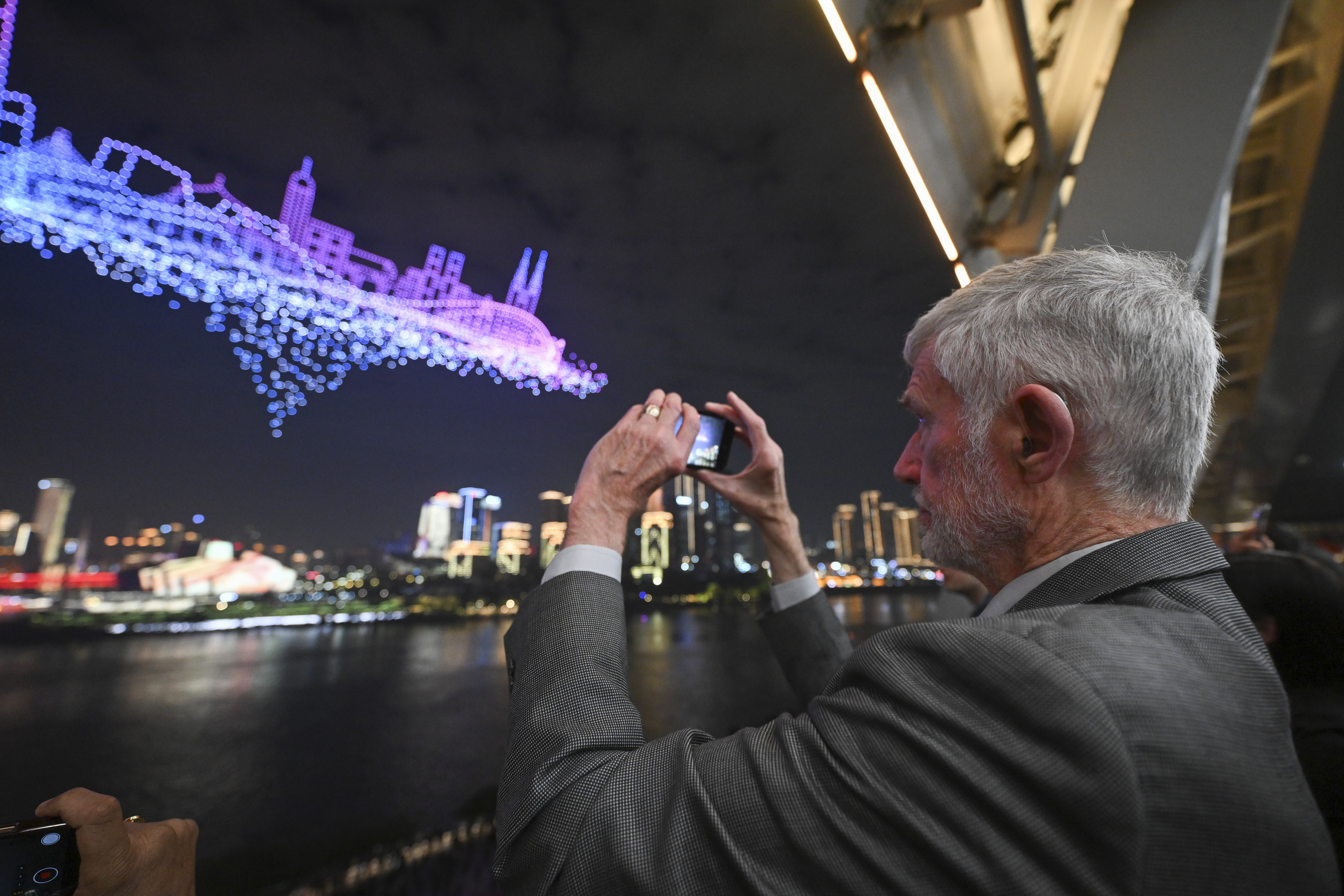 ▲2025年10月27日,重庆国际会客厅,“新韵重庆”无人机灯光秀——2025世界城市日专场展演现场,嘉宾自拍留影。记者 谢智强 摄/视觉重庆