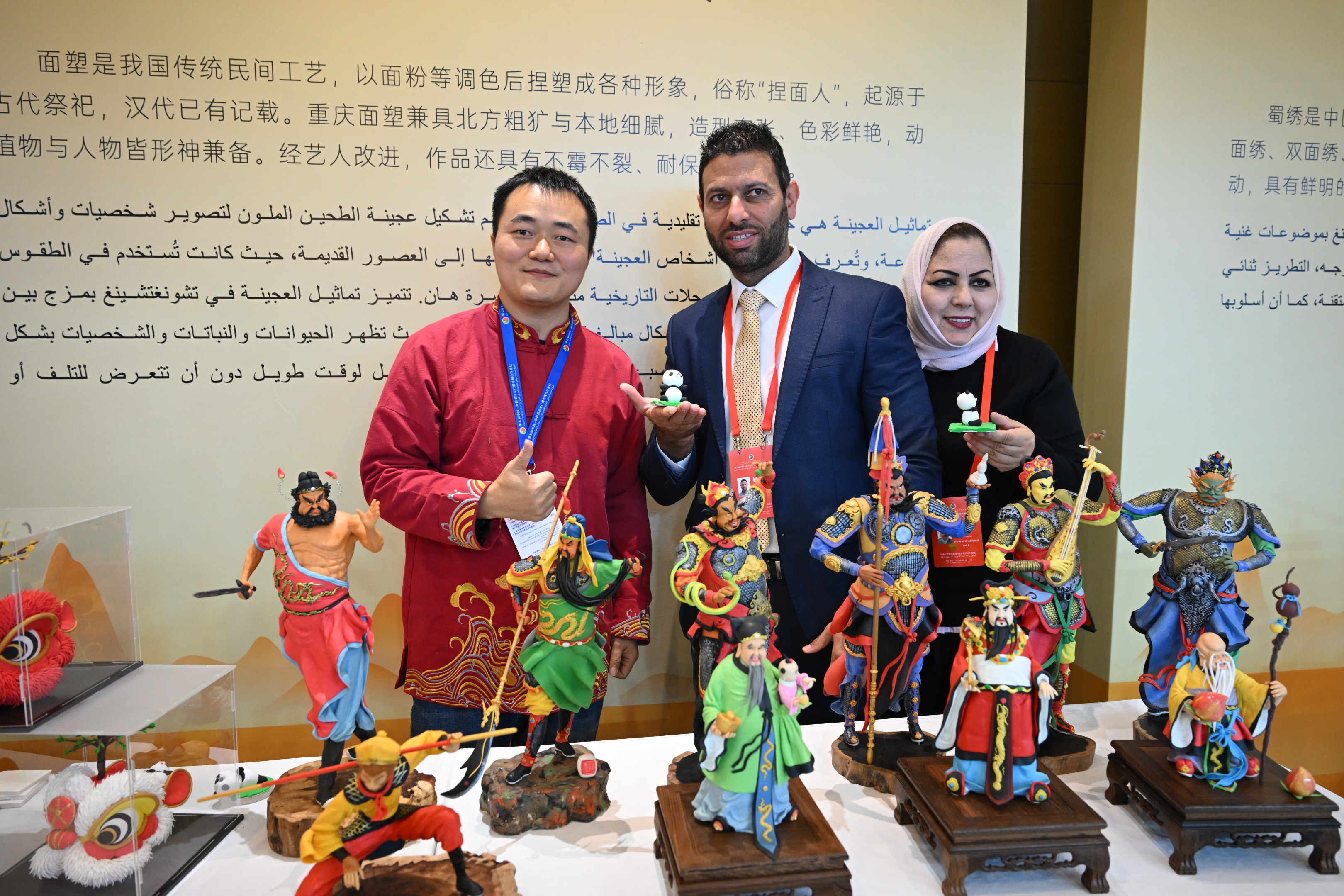 ▲2025年11月5日,在重庆渝州宾馆中阿广电视听内容与技术交流展示现场,嘉宾被非物质文化遗产项目展示吸引。 记者 罗斌 李雨恒 摄/视觉重庆
