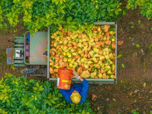 初冬的潼南,尤力克柠檬迎来丰收。在柏梓镇哑河村的柠檬庄园里,果农们手执小剪刀,在成片的柠檬树间精准采摘;“霸天虎”履带车穿梭田间,将柠檬运往20公里外的雪王农业加工车间。