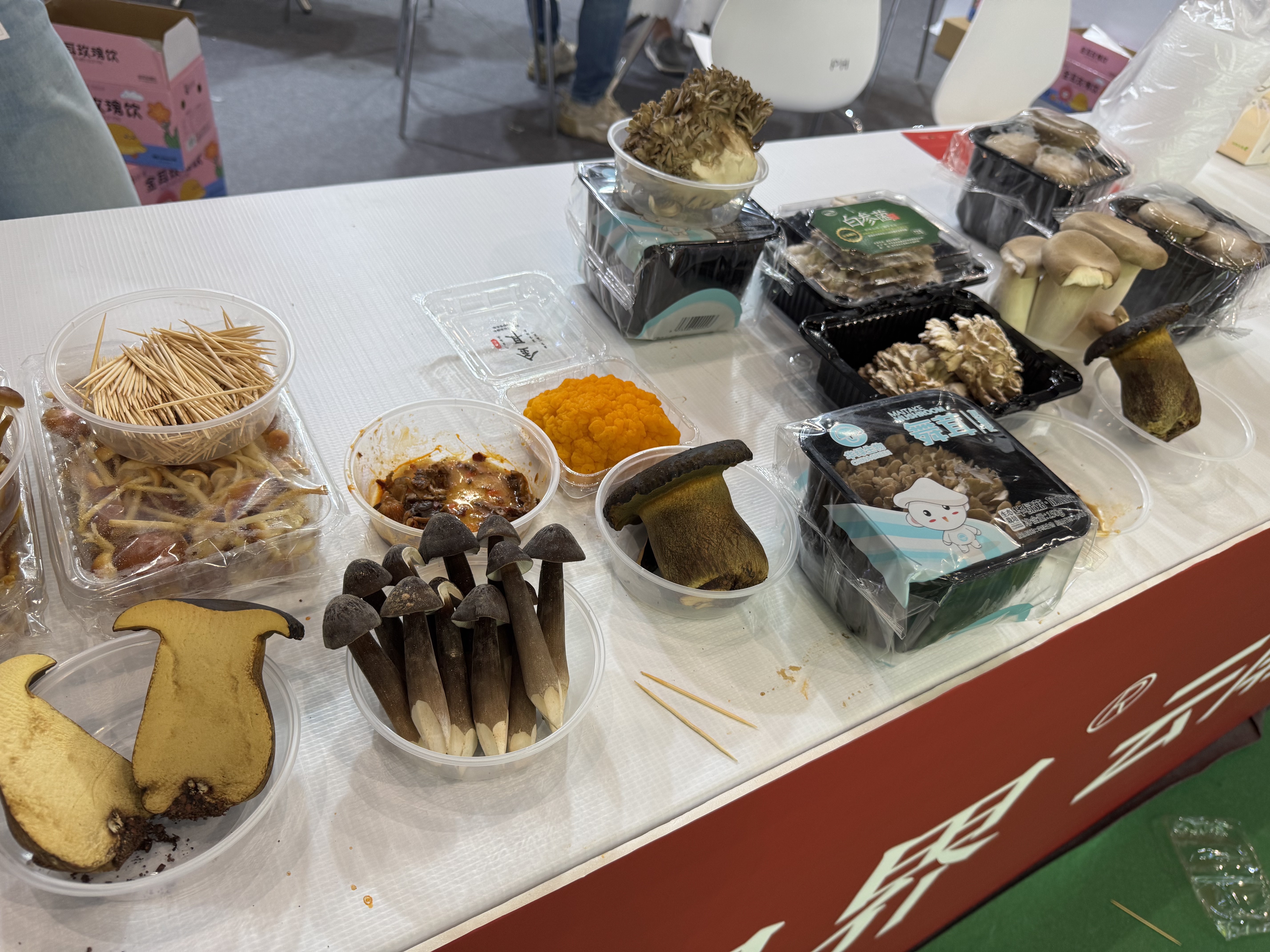 ▲火锅博览会现场,来自云南的绣球菌、金耳银耳等特色菌菇,凭借独特口感和丰富营养,吸引了众多目光。记者 周盈 摄