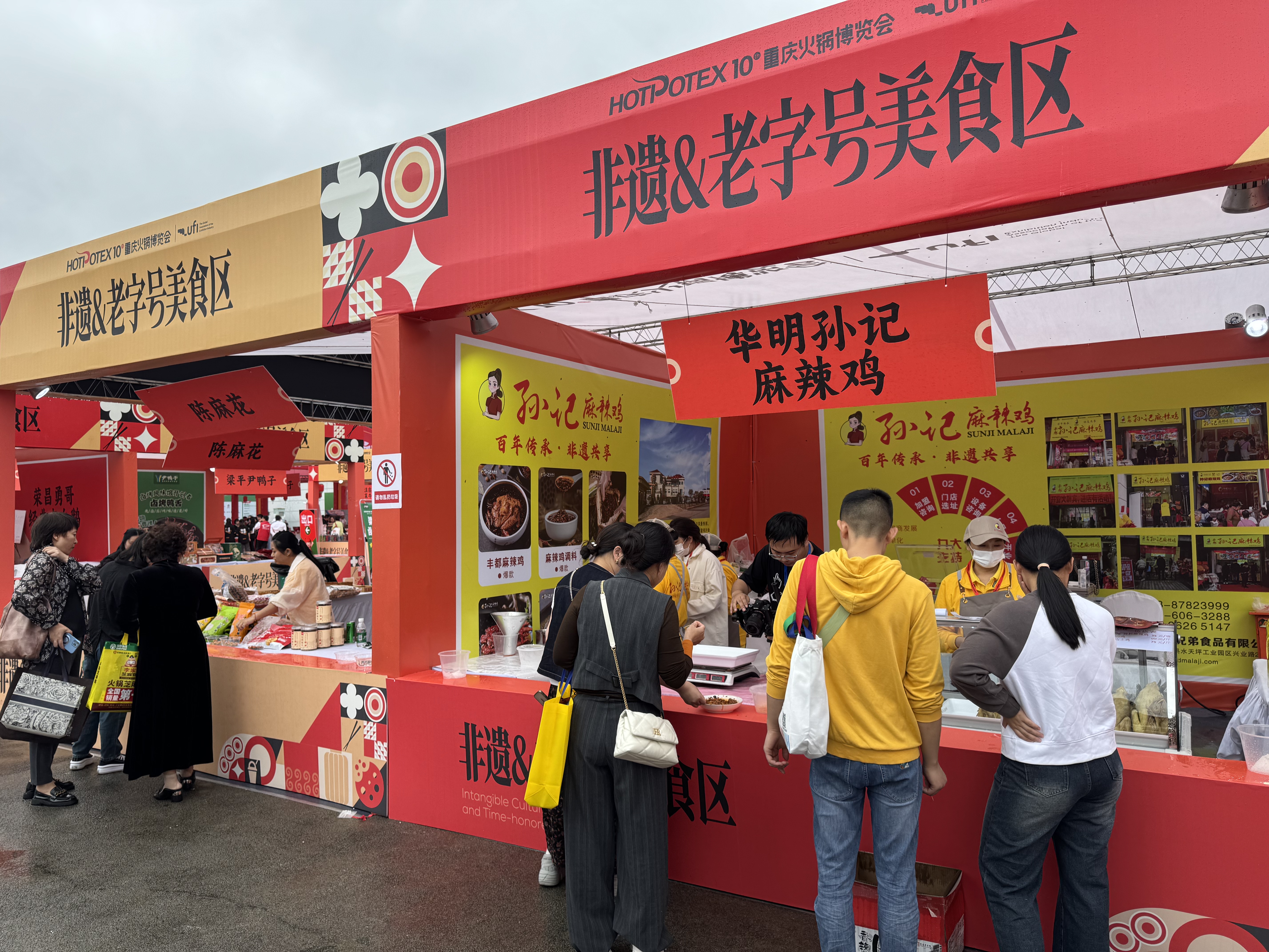 此外,北室外广场还集结了荣昌卤鹅、陈麻花、川北凉粉、华明孙记麻辣鸡、梁平尹鸭子等非遗与老字号美食,让观众大饱口福。这些美食不仅风味独特,更承载着丰富的历史文化内涵,成为此次展会的一大亮点。