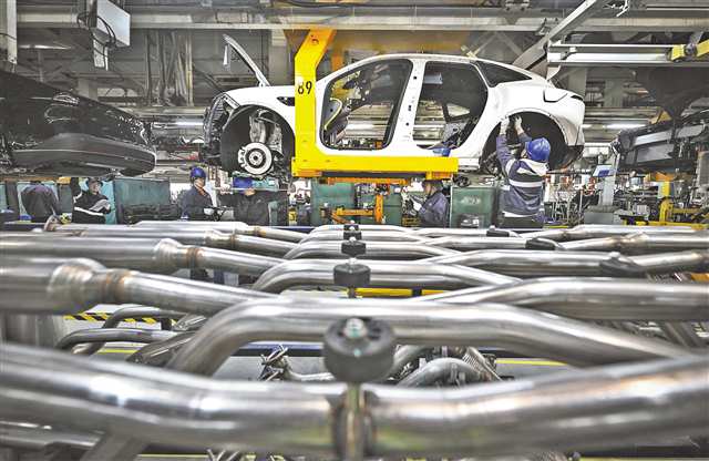 ▲重庆长安汽车两江工厂,工人正在生产线上忙碌。(资料图片)首席记者 龙帆 摄视觉重庆