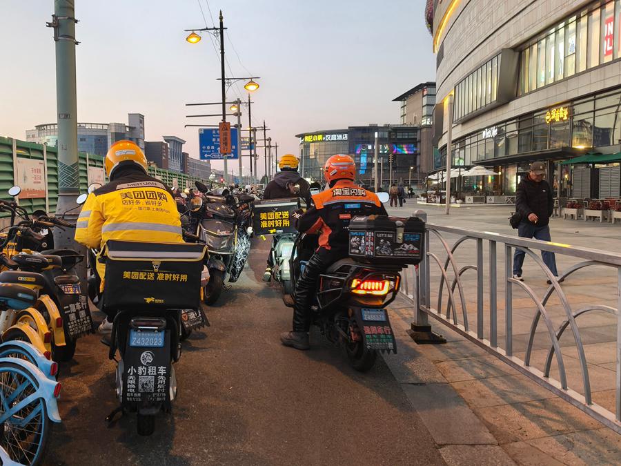 ▲12月15日,外卖小哥正在上海街头工作。新华社记者 方喆 摄