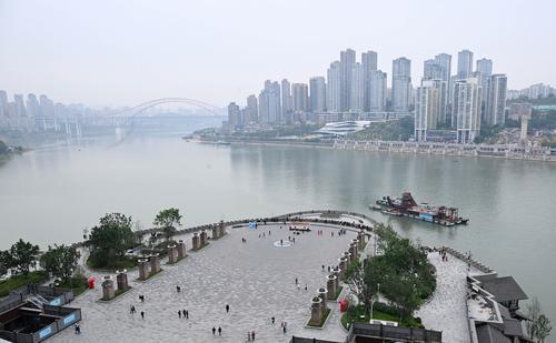 记者现场看到,步道沿途全是滨水绿化,江水拍岸、绿植茂盛,还增加了15处休闲座椅供游客休憩,走两步就能遇见观江台地,站在上面能清晰看到两江交汇的“泾渭分明”奇观,东水门大桥、千厮门大桥的雄姿也尽收眼底。按原旧址复原的朝天门缆车还在建设中。