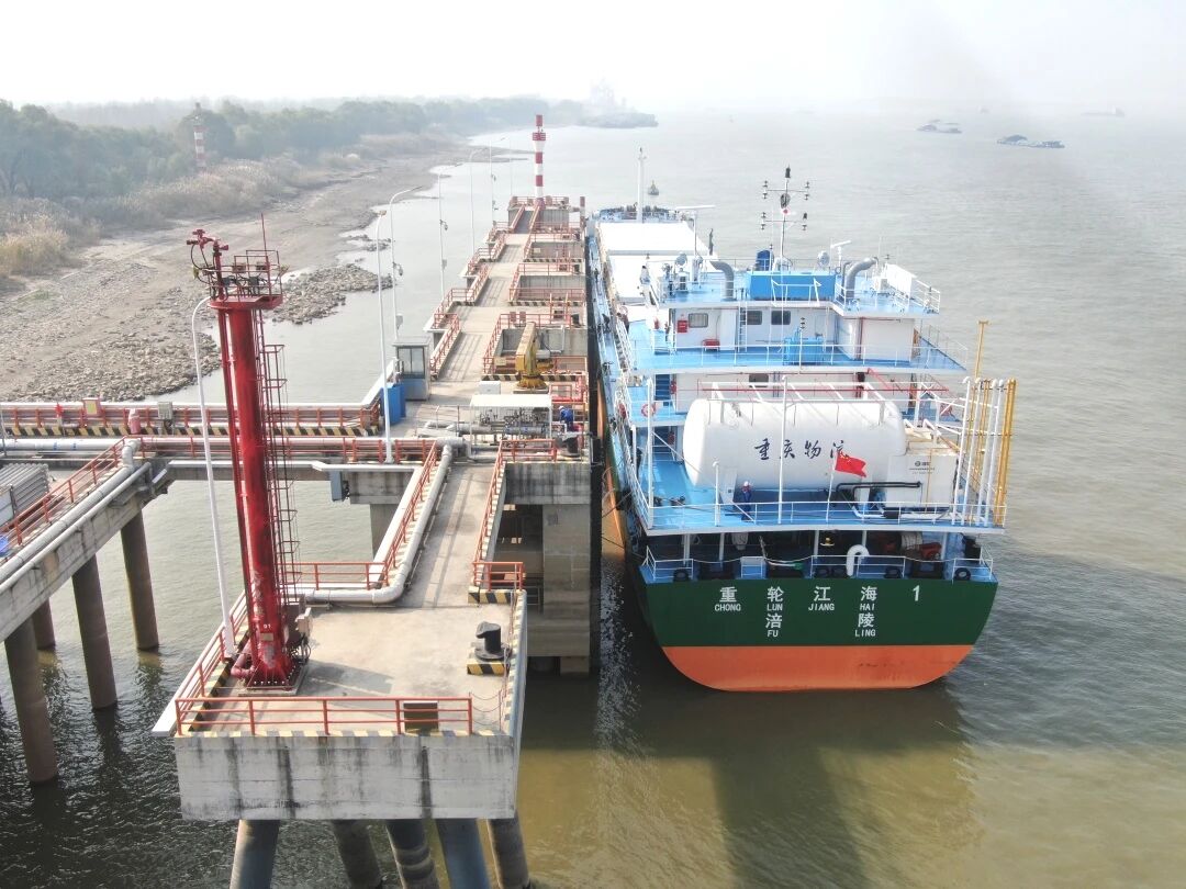 今年11月11日,涪陵黄旗港码头,随着声声汽笛响起,由重庆中江船业有限公司研制建造的我市首艘万吨级液化天然气江海直达多用途船舶——“重轮江海1”鸣笛启航。当天它装载着涪陵华峰化工生产的己二酸产品,沿长江驶往宁波舟山港,实现“一船直达、一票到底”。