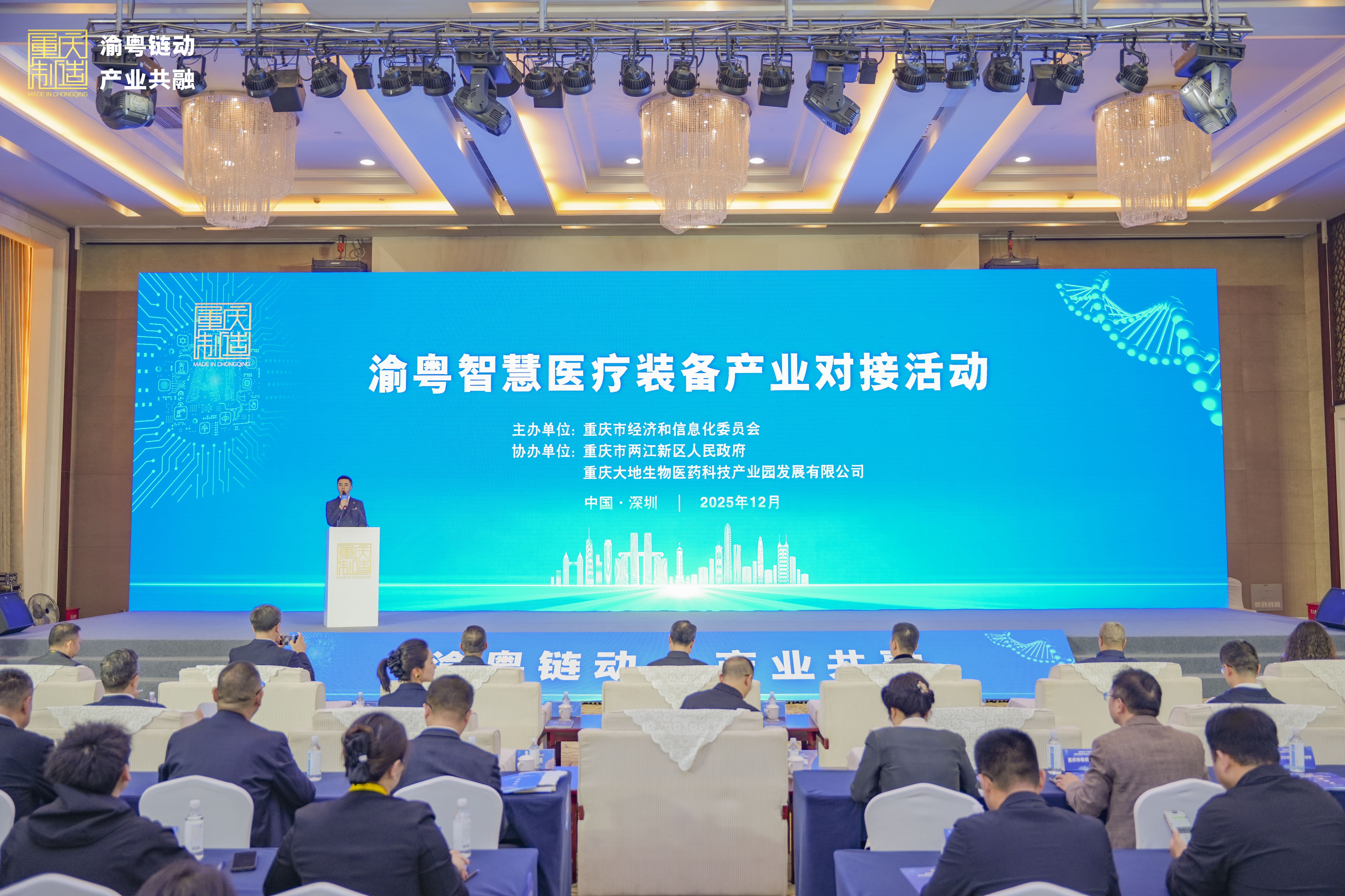 12月24日,一场以“渝粤链动·产业共融”为主题的智慧医疗装备产业对接活动在深圳举行。活动由重庆市经济和信息化委员会主办、重庆市人民政府驻广东办事处协办,聚集了重庆相关部门、区县代表,以及广东地区医疗装备企业、院所及行业协会代表等200余人,共同探讨两地产业合作新路径。