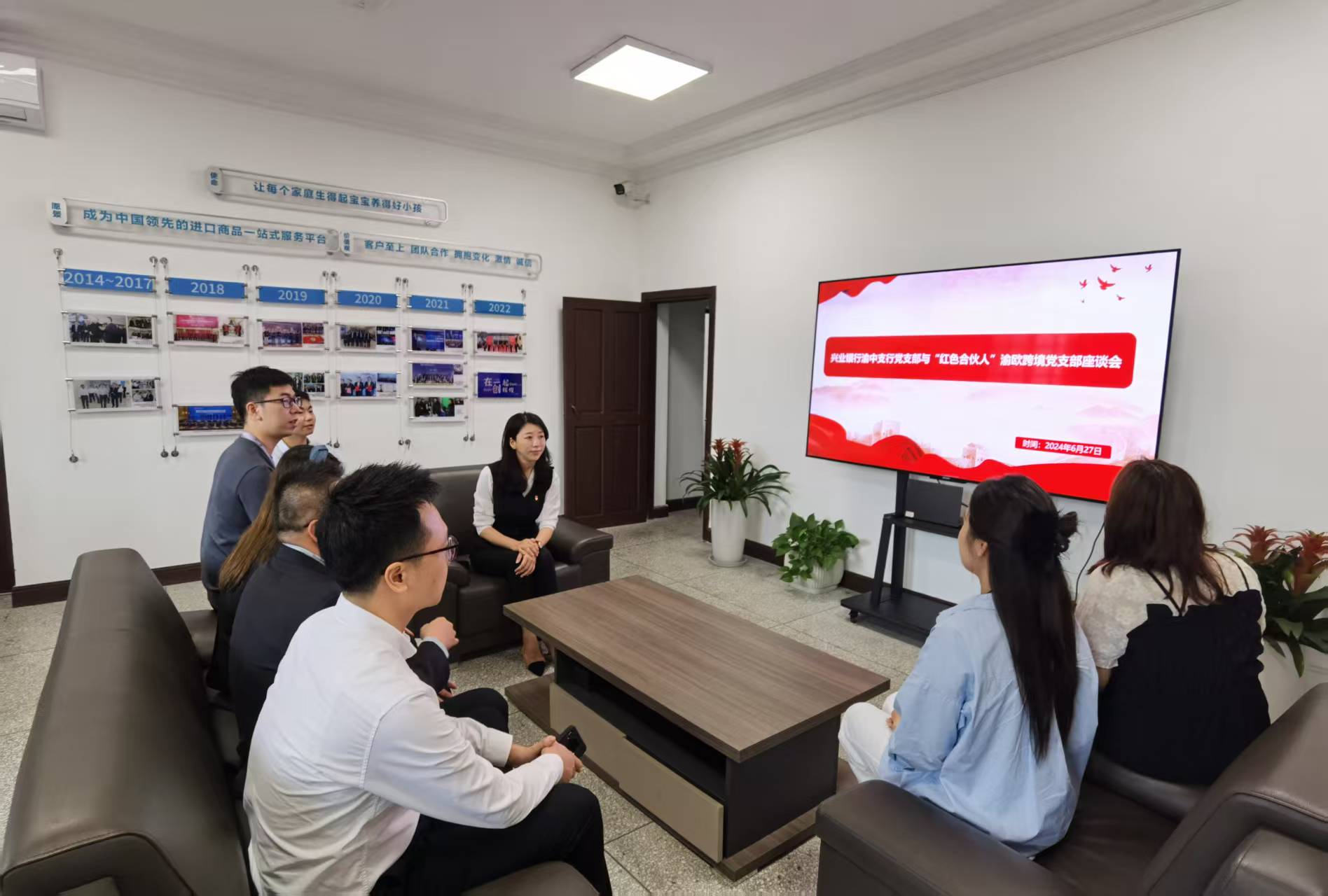 ▲兴业银行重庆渝中支行与“红色合伙人”渝欧跨境开展座谈会。