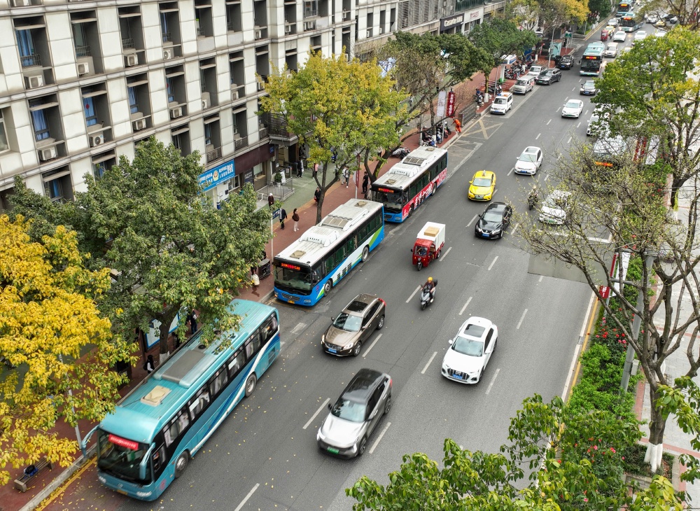 ▲2025年4月11日,沙坪坝区树人小学周边,公交车在延长后的公交道有序停靠。这里可容纳6辆公交车同时停靠。 记者 张锦辉 摄/视觉重庆