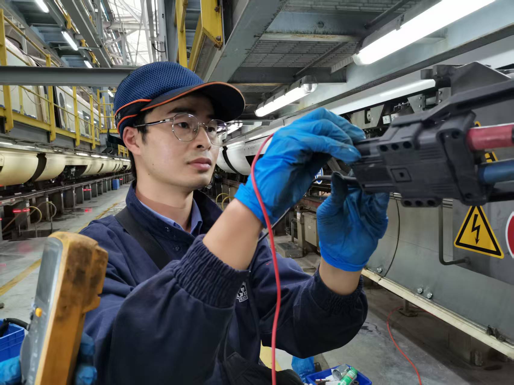 11月18日,在中国铁路成都局集团有限公司重庆车辆段重庆西动车运用车间检修库,作业人员正对动车组空调电加热装置进行检查。连日来,该段结合冬季特点,以卡控关键环节为抓手,强化冬季行车安全防范,筑牢动车组运行安全屏障。