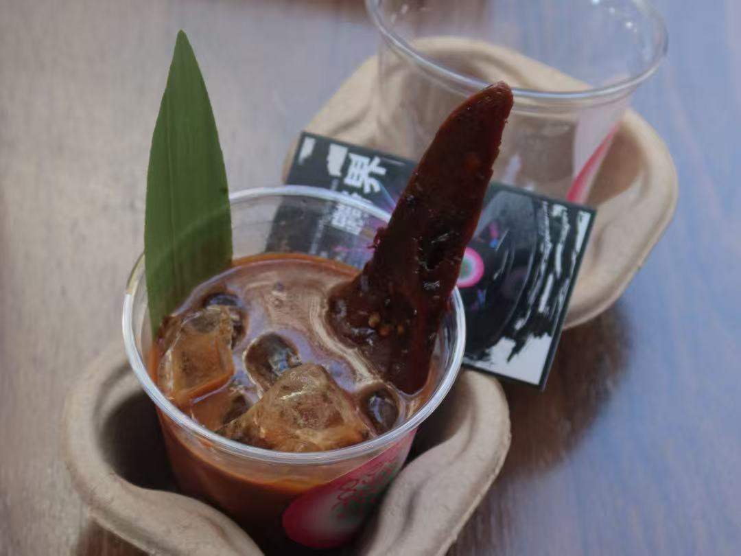 奇特的造型让这款咖啡自带流量,不少人甚至专程为它奔赴衢州。从台州赶来的林女士,就是被社交平台的视频“种了草”:“刷到时觉得特别有意思,我本身爱喝咖啡,就想来试试这混搭风味。”她凑近杯子轻嗅,浓郁的卤香扑面而来,但入口却格外温和,“闻着鸭头味明显,喝起来却很淡,老板说多泡会儿更入味,我试了下,确实能尝到一丝辣味和回甘,算是成功的创新。”
