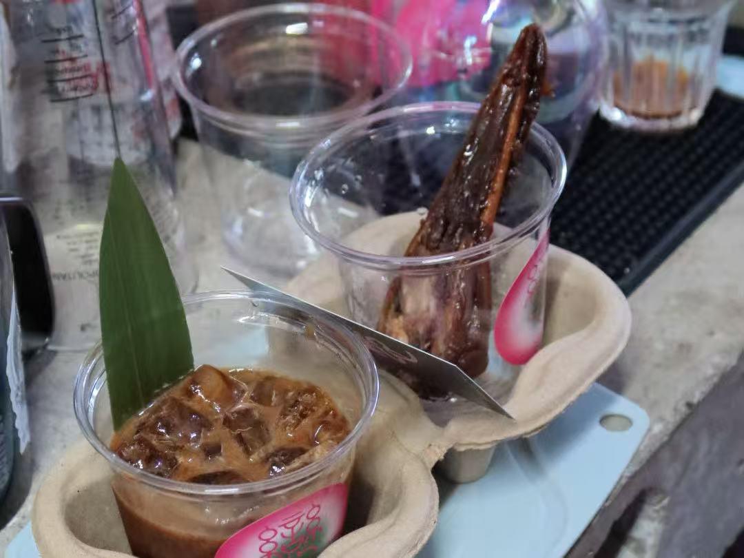 其实在鸭头咖啡之前,阿泽也尝试过其他食材与咖啡的搭配,比如用青椒、花椒混搭咖啡,但口感始终差些意思,多次调试后都没推出。直到锁定衢州鸭头,他觉得卤鸭头的甜辣与咖啡的微苦或许能碰撞出惊喜,便开始专注打磨这款产品。