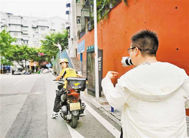 ▲梁平核桃湾,摄像师在拍摄微电影《追风少年》中的外卖小哥片段。(梁平区融媒体中心供图)