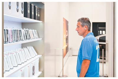 ▲作为许多来华外国游客入境游“第一站”,上海见证了强劲的入境游消费活力。今年上半年,上海海关共验核离境退税申请单6.4万票,比去年同期大幅增长1.4倍,数量与去年全年总单数基本持平。图为近日,外国游客在位于上海市南京路步行街的华为商店里浏览电子产品。新华社记者 陈浩明摄