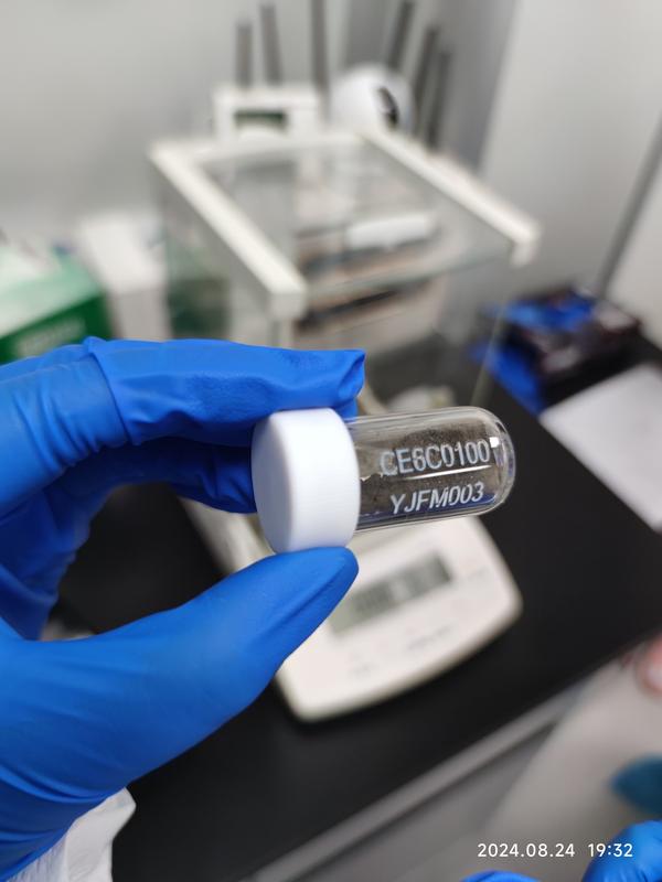 ▲2024年8月24日,在中国科学院广州地球化学研究所实验室内拍摄的月壤样品。(中国科学院广州地球化学研究所供图)
