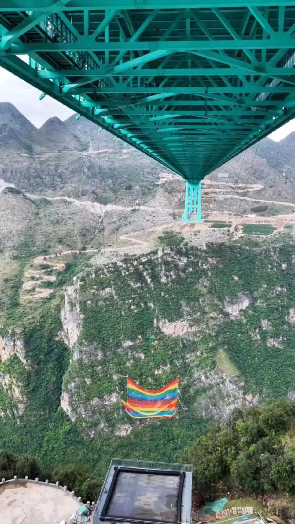 20日,花江峡谷大桥景区工作人员就此事回应新京报记者称,安全网的防护性能符合国家标准,除了主防护网外,底部设有气垫作为备用防护。