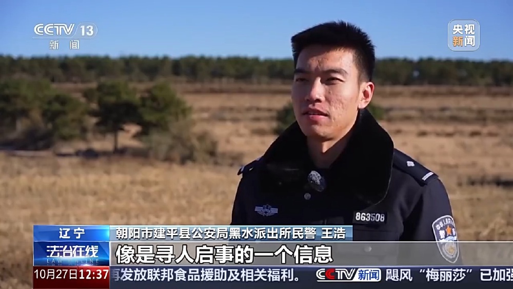 朝阳市建平县公安局黑水派出所民警 王浩:当时找了大概一个小时,无人机三块电池都没电了。我就编辑了一个像寻人启事的信息,发到我们村干部群里。