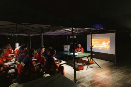 合成训练以开州港突发较大以上森林火灾为背景,接警后,在市应急管理局指挥中心的调度下,救援队员火速集结,分级分批有序调度救援力量参与森林灭火处置行动。