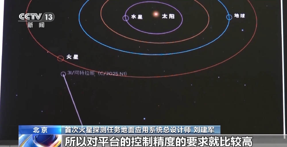 北京航天飞行控制中心 刘少然:通过计算天问一号的精确轨道,以及结合阿特拉斯星体的轨道,最后得出了相对位置关系,给出了最终的精确的拍摄指向。