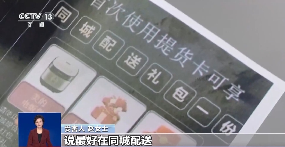 受害人 赵女士:我看了一下提货卡,上面写着,你这个是生鲜产品,说最好在同城配送,因为我想快点收到货,所以扫码下载了软件。