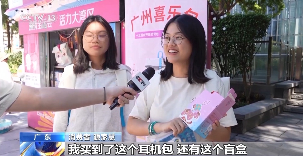 消费者 源家慧:我买到了耳机包、盲盒,还有志愿者同款的收纳包。那个海豚,很呆萌、很可爱,还有一些和传统文化结合的文创产品,颜值特别高,物超所值,特别好。作为广东人很自豪,因为四年才一届,今年就在粤港澳大湾区举办了,感受一下全运会的氛围。