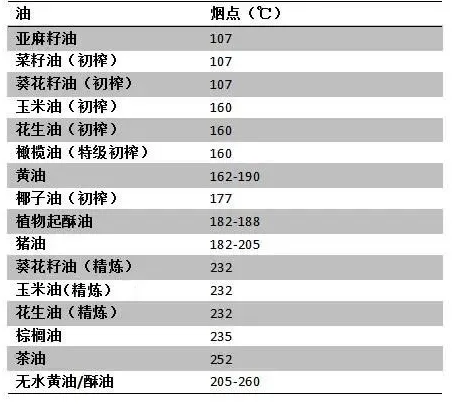 ▲常见油脂的烟点(图/科普中国)