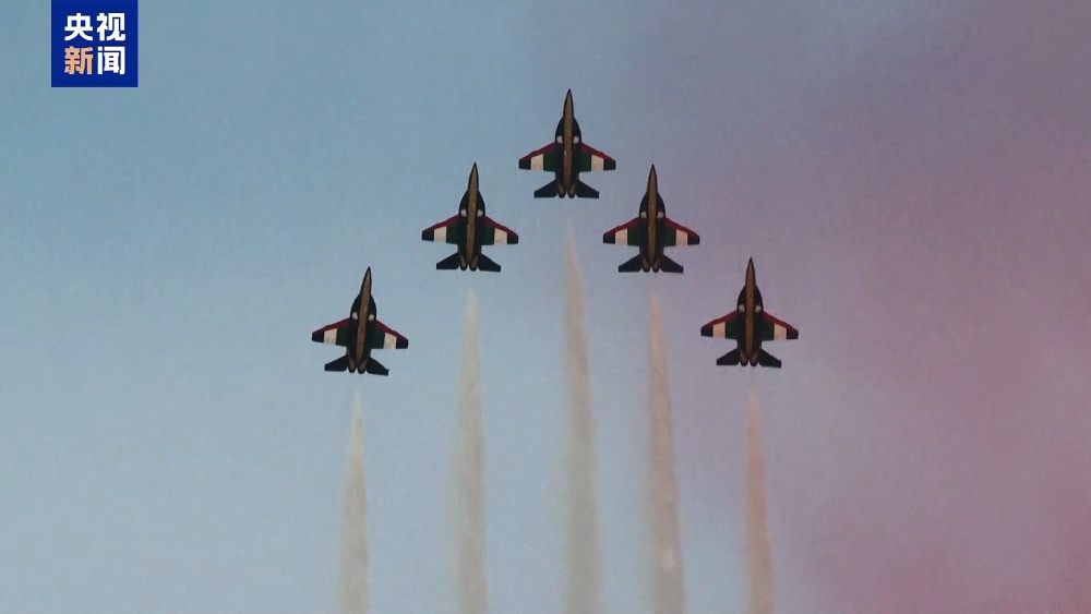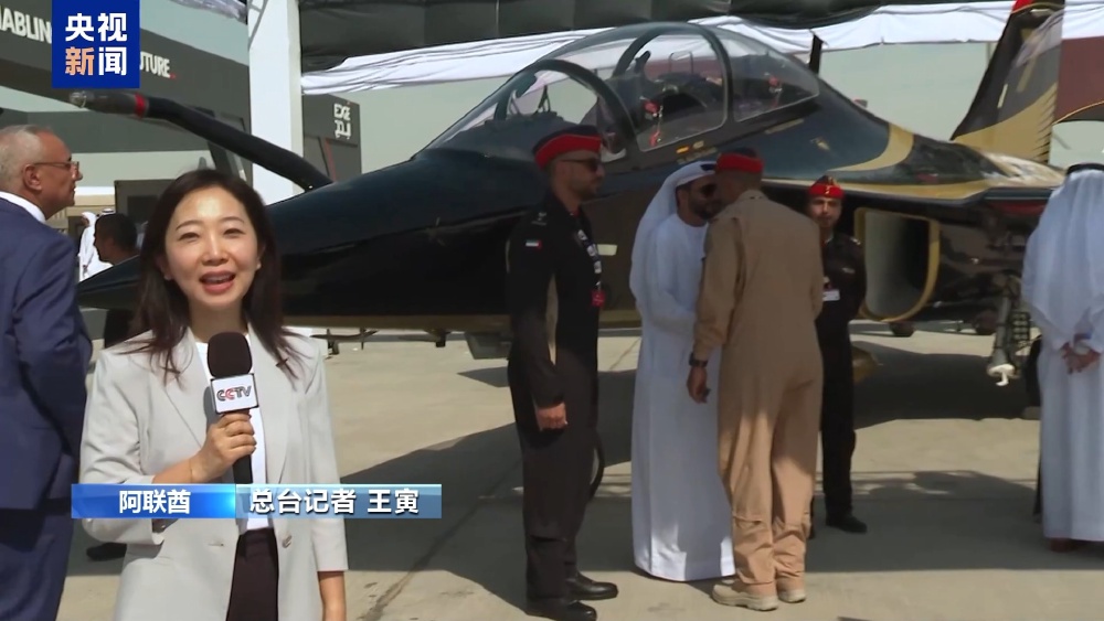 总台记者 王寅:此刻,正在我身后被大家争相合影是阿联酋“骑士”飞行表演队在今年迪拜航展期间首次亮相的一款教练机。这款机型正是由我们中国自主研发制造的L-15A高级教练机。“骑士”队为他们的新成员换上了全新的涂装,黑金配色在阳光下格外耀眼,一亮相就吸引了全场的目光。