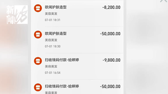 近日,家住上海虹口的市民周女士向“新闻坊同心服务平台”反映,她的女儿王女士自2023年6月份开始,向宝山区共康路上一家名为“欧文”的美容美发机构充值。仅2023、2024两年间,王女士充值了近55万元,仅2023年7月1日这一天里,就消费了17万3千多元!