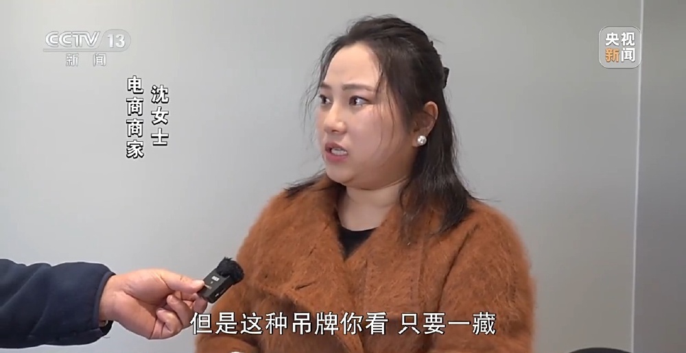 电商商家 沈女士:以前我们都是用这种小吊牌,但是这种吊牌只要一藏,就藏起来了。她穿出去也不觉得难看,丢脸。所以我们现在应对的措施就是用很大的吊牌,A4纸那么大,那看你怎么穿出去了。