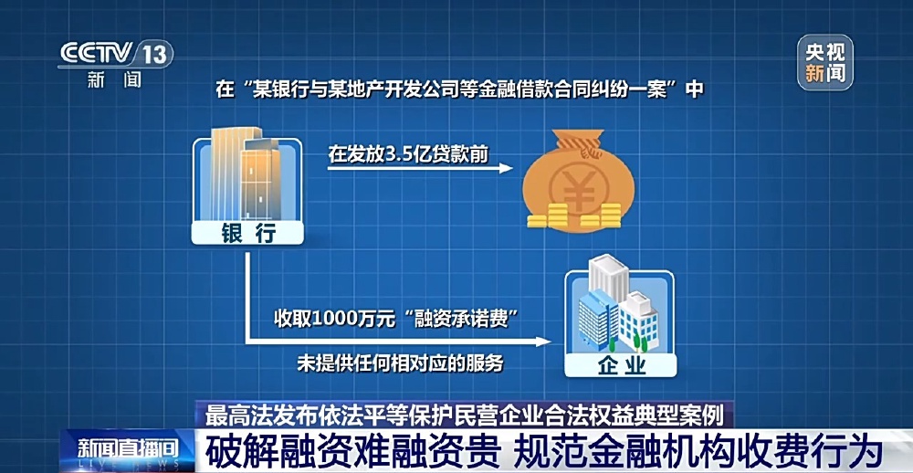 最高人民法院今天召开新闻发布会,发布“依法平等保护民营企业合法权益”典型案例,直击融资成本高、金融机构乱收费等问题,通过明确裁判标准,规范金融机构收费和放贷行为,助力破解民营企业融资难、融资贵问题。