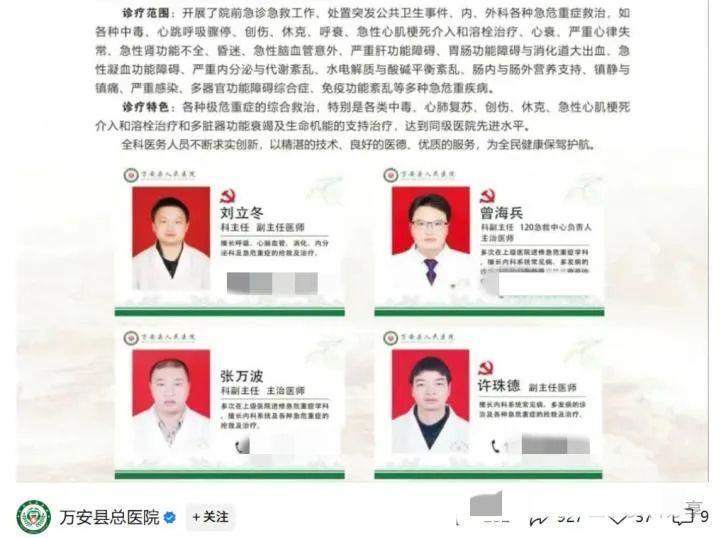 据网友爆料,涉事推文标题为《万安县总医院各院区科室及医生介绍》,内容涵盖该院人民医院院区、中医院院区、妇幼保健院院区的科室诊疗范围、特色优势等信息。在医生个人介绍板块,除了专业背景介绍外,均清晰标注了对应的手机号码,其中一名分院区院长也以科室医生身份公开了联系方式。