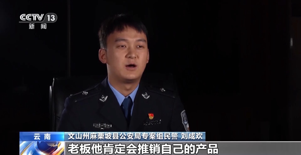 文山州麻栗坡县公安局专案组民警 刘成欢:因为按照常理来说,老板他肯定会推销自己的产品。反常的是,老板不但没有推销,站在旁边那几个人比老板还知道这个药到底是什么、可以治疗什么病,我们当时就警觉起来,这可能是一伙人进行的诈骗。