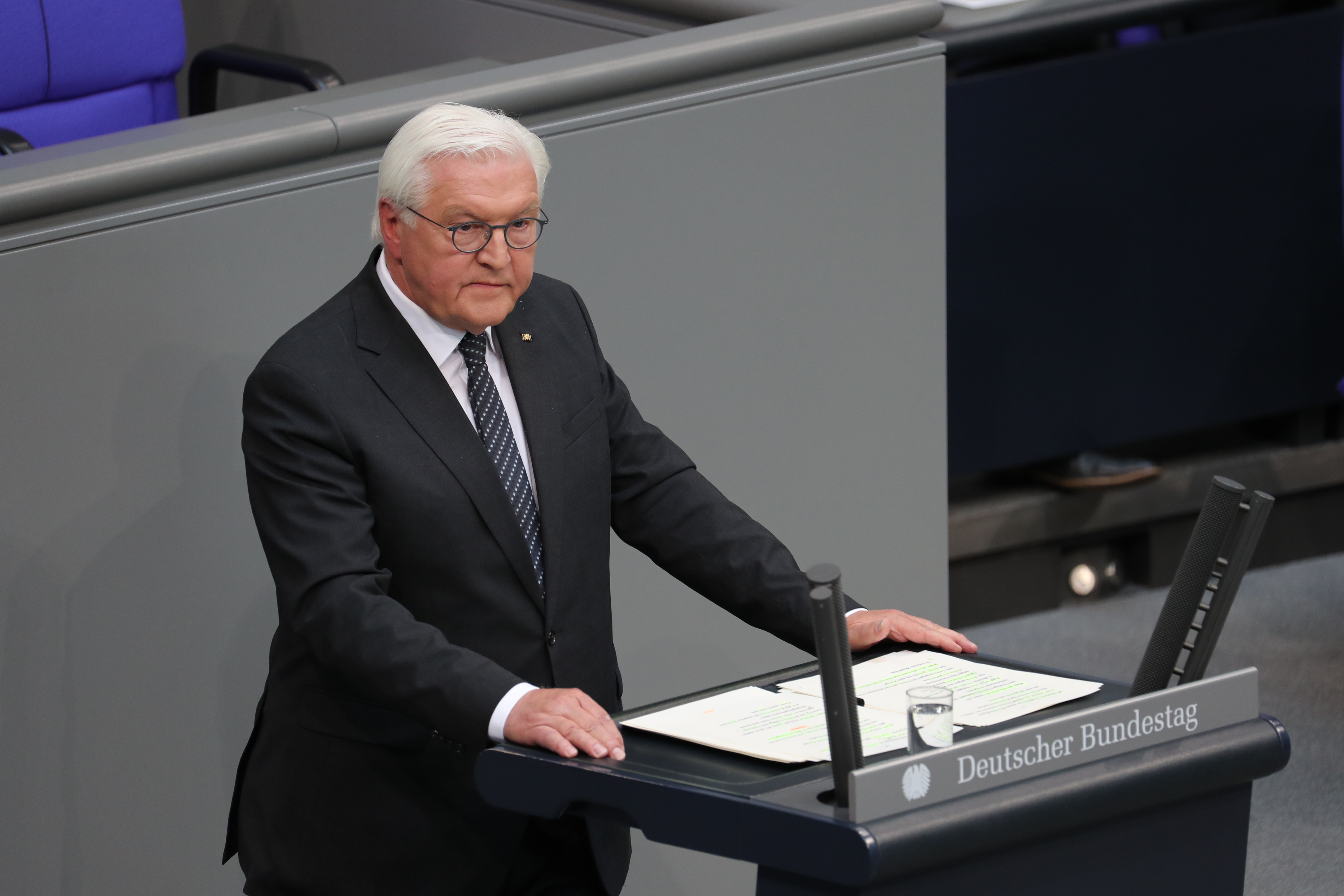 ▲5月8日,德国总统施泰因迈尔在首都柏林国会大厦举行的纪念活动上致辞。新华社记者杜哲宇摄